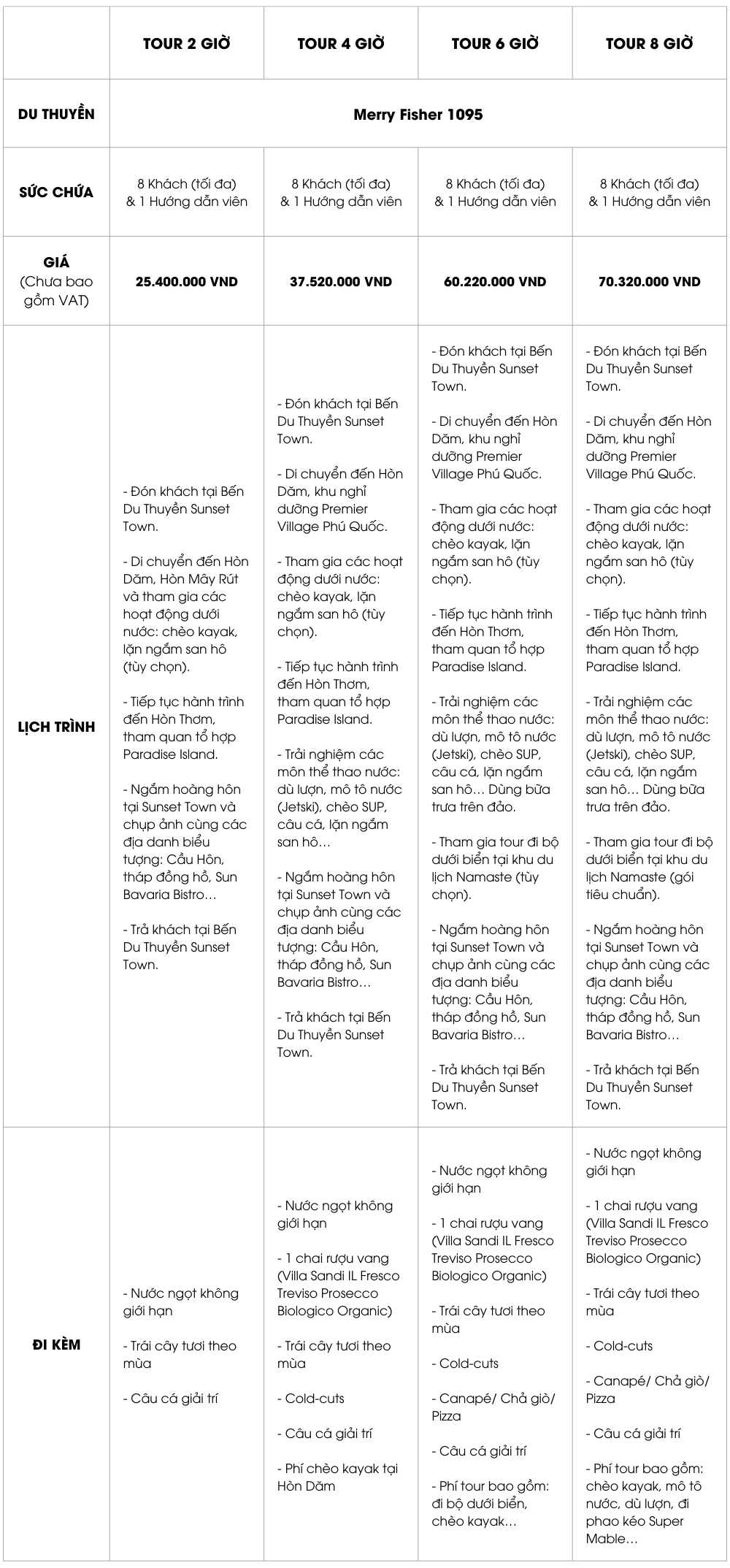 Đến với Phú Quốc tham quan và nghỉ dưỡng du khách không thể nào bỏ lỡ những dịch vụ hấp dẫn từ Kim Thành Holdings Tại đây chúng tôi đem đến cho quý khách nhiều lựa chọn phù hợp với nhu cầu Du thuyền Sunset Yacht dành cho 8 khách là lựa chọn số một cho